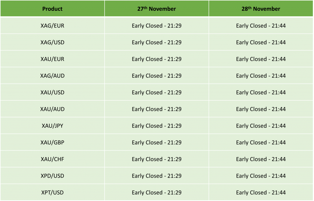 Theo thông báo chính thức từ IC Markets, lịch giao dịch cho Ngày Lễ Tạ Ơn tại Hoa Kỳ năm 2025 sẽ có một số thay đổi vào Thứ Năm, ngày 27/11/2025 và Thứ Sáu, ngày 28/11/2025.