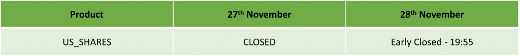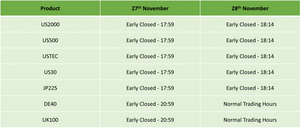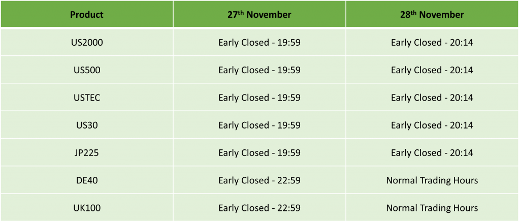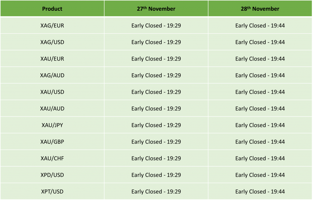 IC Markets cho biết rằng trong kỳ nghỉ Lễ Tạ Ơn, thanh khoản trên thị trường dự kiến sẽ giảm mạnh. Do đó, nhà đầu tư nên cẩn trọng trước khả năng gia tăng biến động giá, chênh lệch spread mở rộng và hiện tượng gián đoạn báo giá ngắn hạn.